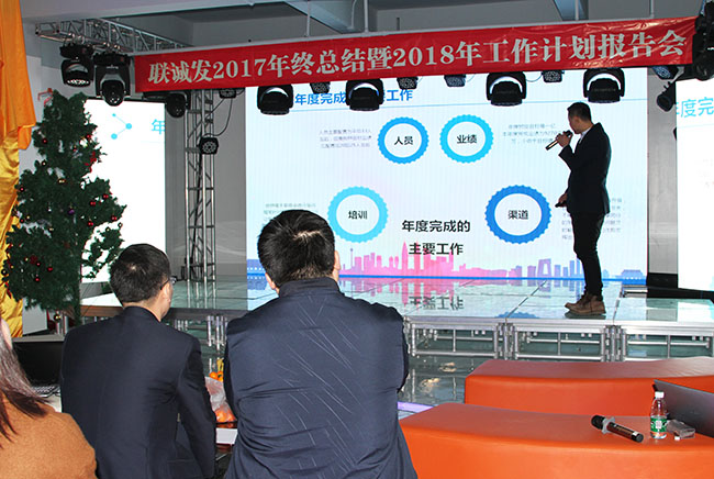 创始人龙平芳女士也通过PPT对公司17年作出的成绩进行了总结,分析了公司在过去的一年中,企业发展所存在的一系列问题与不足,并将在2018年得到全面解决与完善。公司在2018年将把重点放在企业战略、创新研发、品牌建设三大板块,为企业的未来发展布局。新的一年里,公司计划将持续性的加大产品研发投入,用创新型及实用性的新产品拓展市场,提升企业的产品竞争力,进一步提升产品品牌认知度、认可度和美誉度,树立良好的企业品牌形象。也将会把人才战略作为2018年工作重点,加大人才引进力度,加强人才培养和人才储备,从人才福利、企业文化、员工生活方面着手,让所有leyu乐鱼人都能看到自己的未来。解说过程中,大家纷纷拿起手机,将内容同步录了下来,不得不说,决策者的规划既有理论的高度,又有实践的深度。
